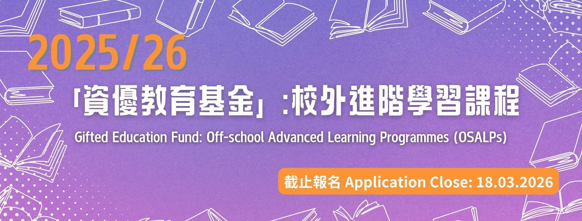 Gifted Education Fund: Off-school Advanced Learning Programmes is opened for application from 11 February to 18 March 2026. For details, please refer to: