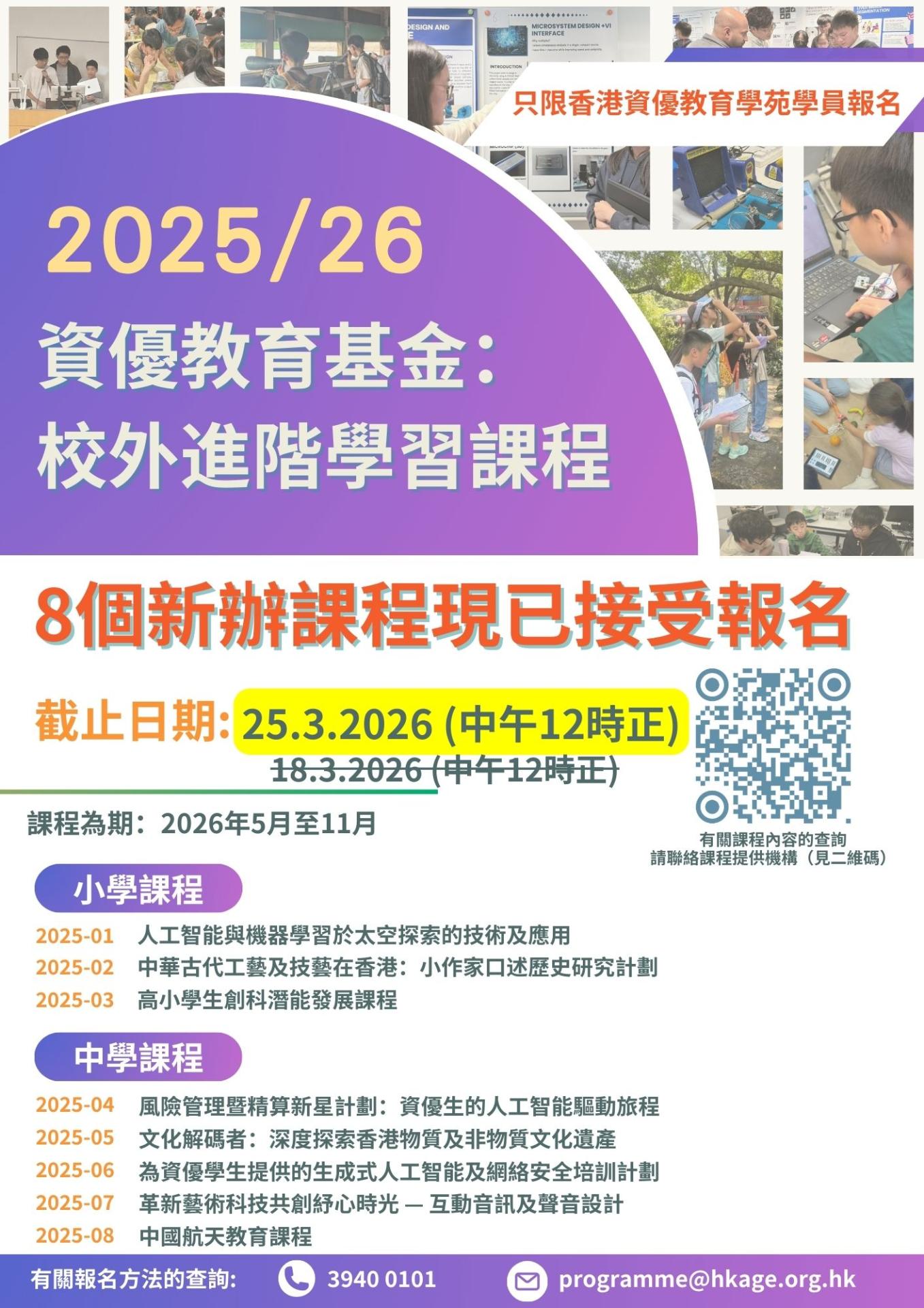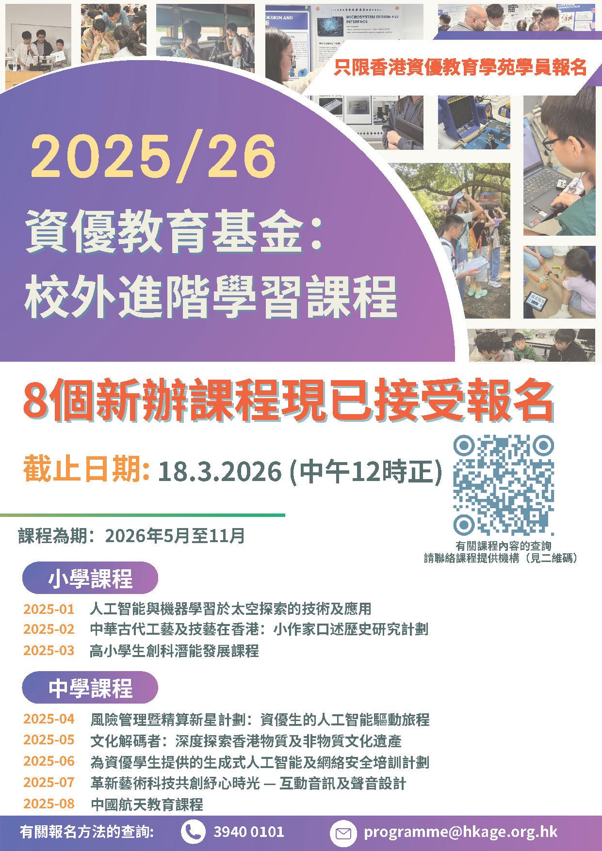 「資優教育基金」:校外進階學習課程(2025/26學年)