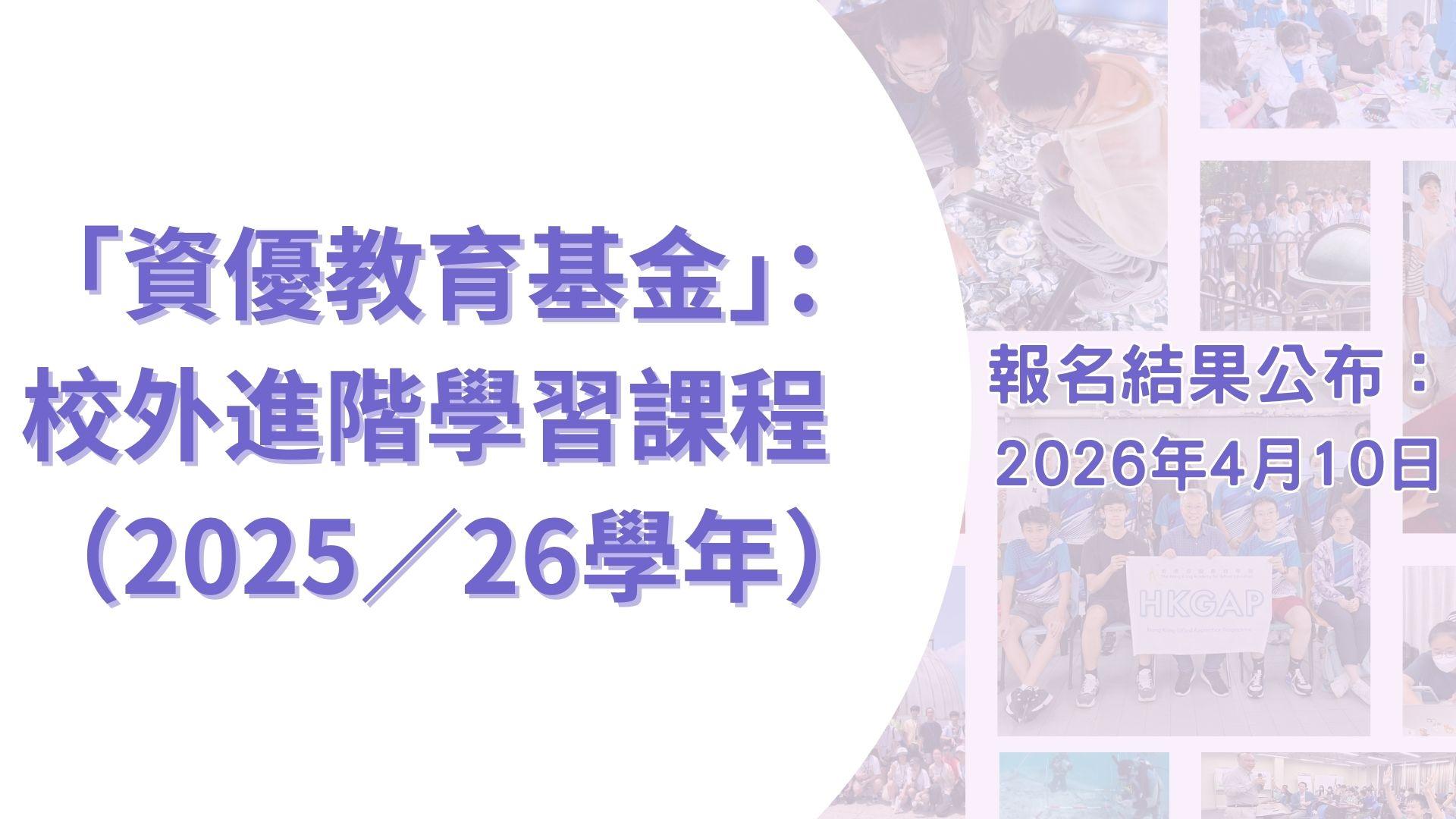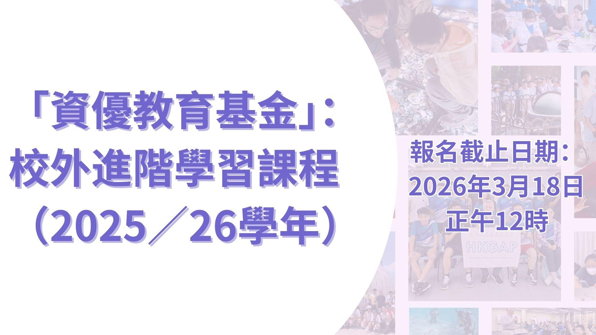 「資優教育基金」:校外進階學習課程(2025/26學年)