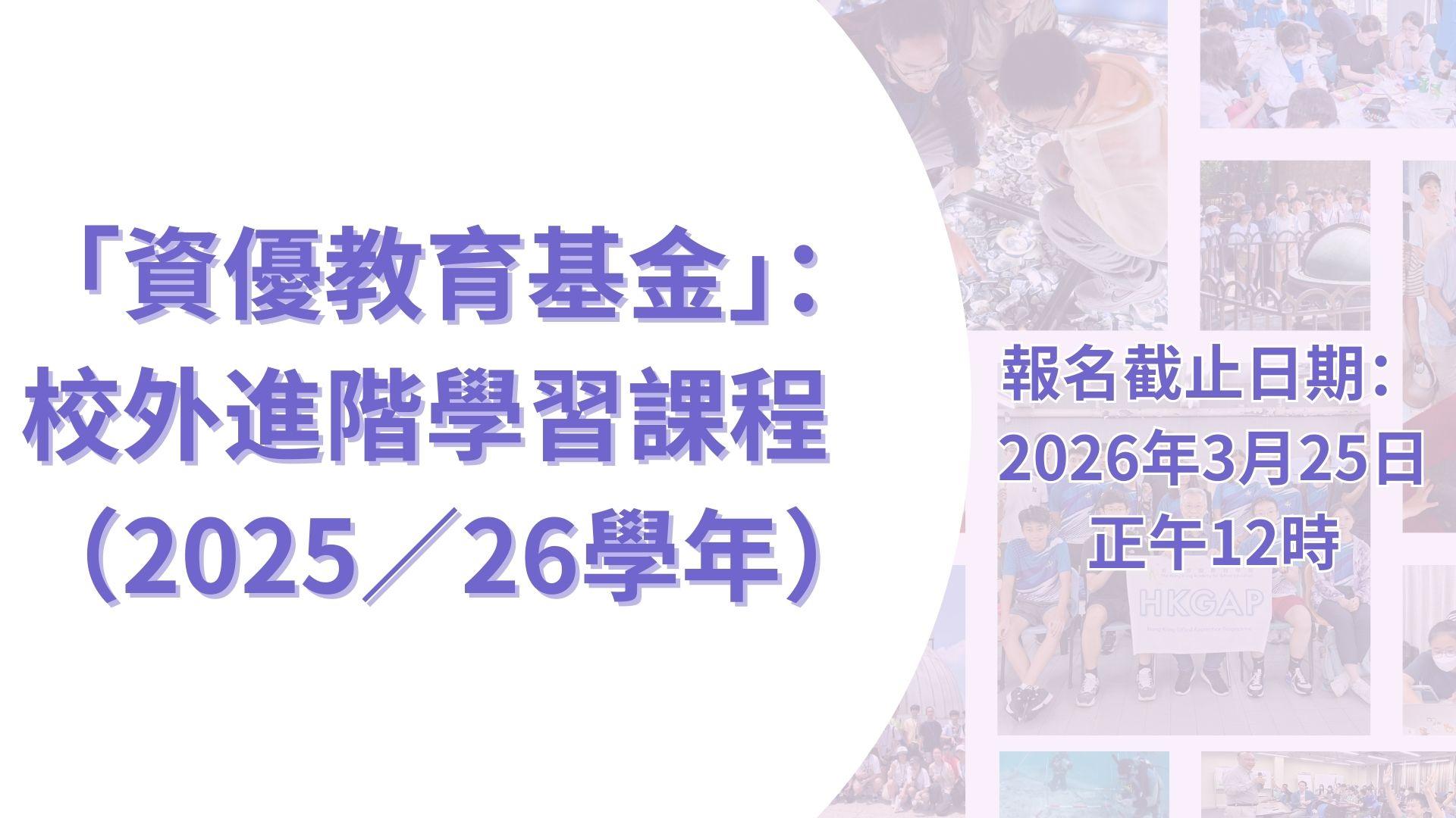 「資優教育基金」:校外進階學習課程(2025/26學年)