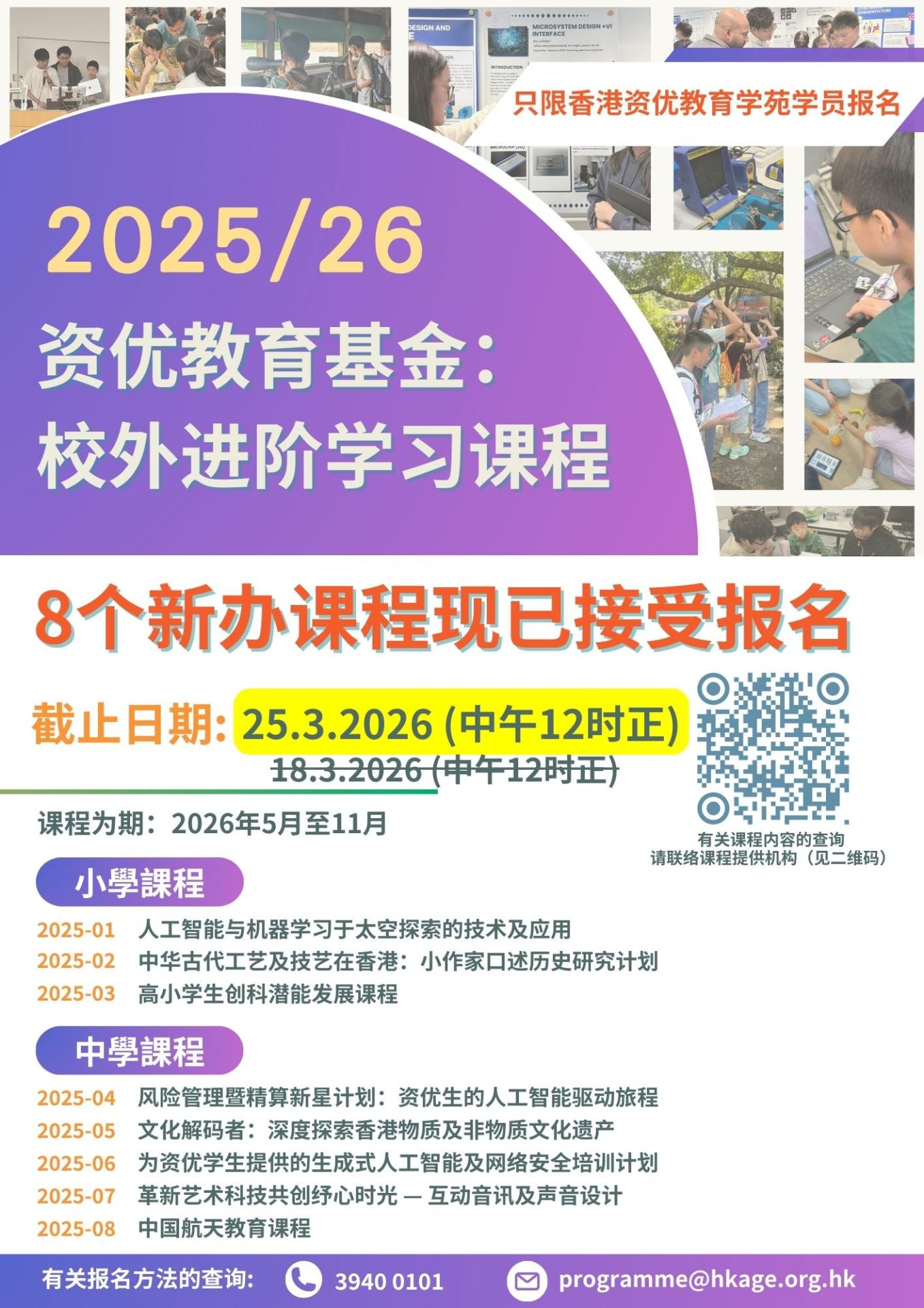 「资优教育基金」:校外进阶学习课程(2025/26学年)