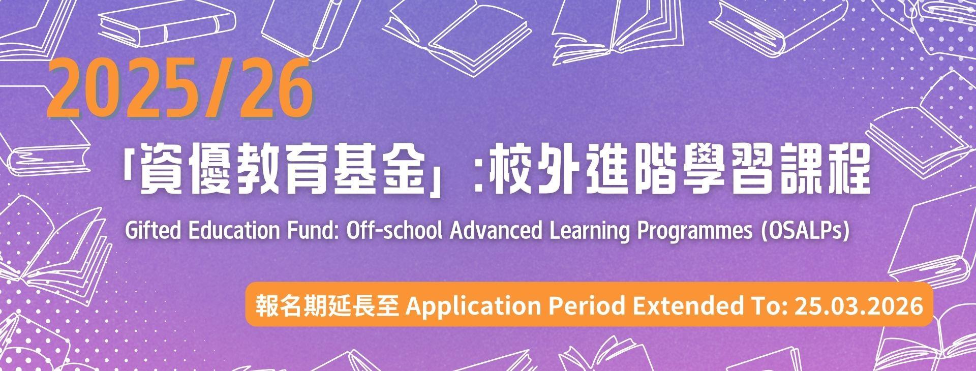「資優教育基金」:校外進階學習課程的報名期為2026年2月11日至3月25日(已延期),詳情請參閱: